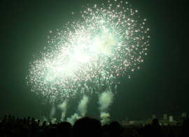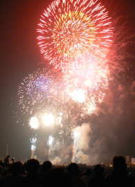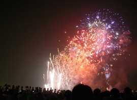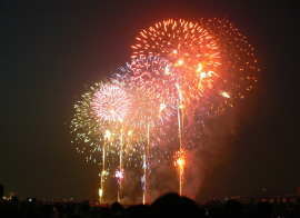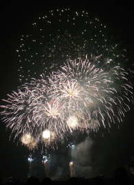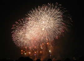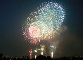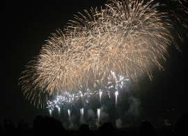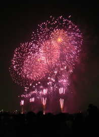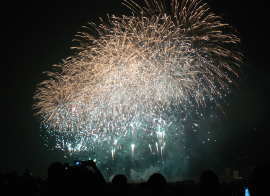 今年も7時15分より8時30分まで盛大に花火大会が開催されました。 色とりどりの花火を堪能させていただきました。